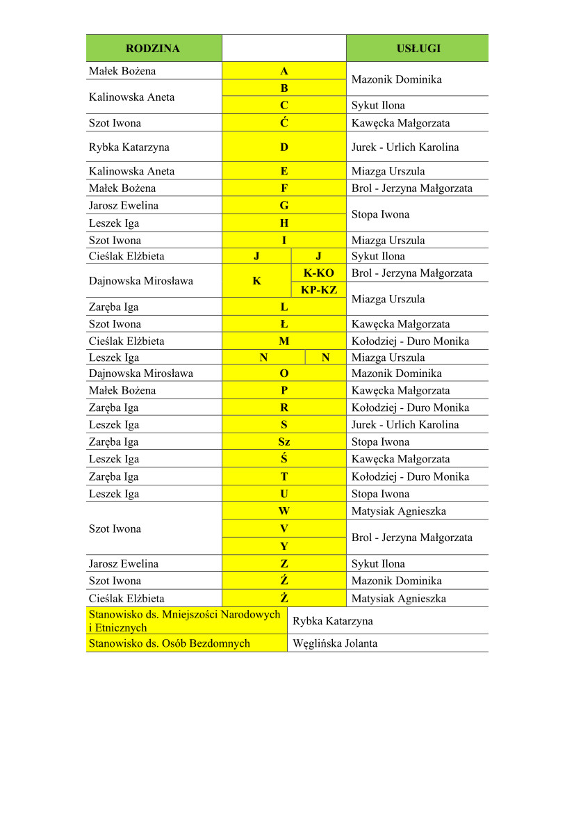 • Zespół ds. Usług i Pomocy Instytucjonalnej