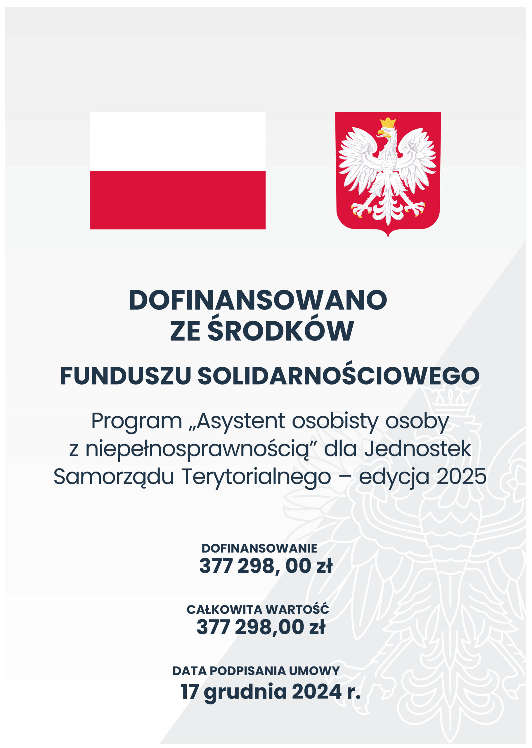 Miejski Ośrodek Pomocy Społecznej w Puławach informuje o przystąpieniu do realizacji resortowego Programu Ministra Rodziny i Polityki Społecznej „Asystent osobisty osoby z niepełnosprawnością” dla Jednostek Samorządu Terytorialnego – edycja 2025 – finansowanego ze środków Funduszu Solidarnościowego