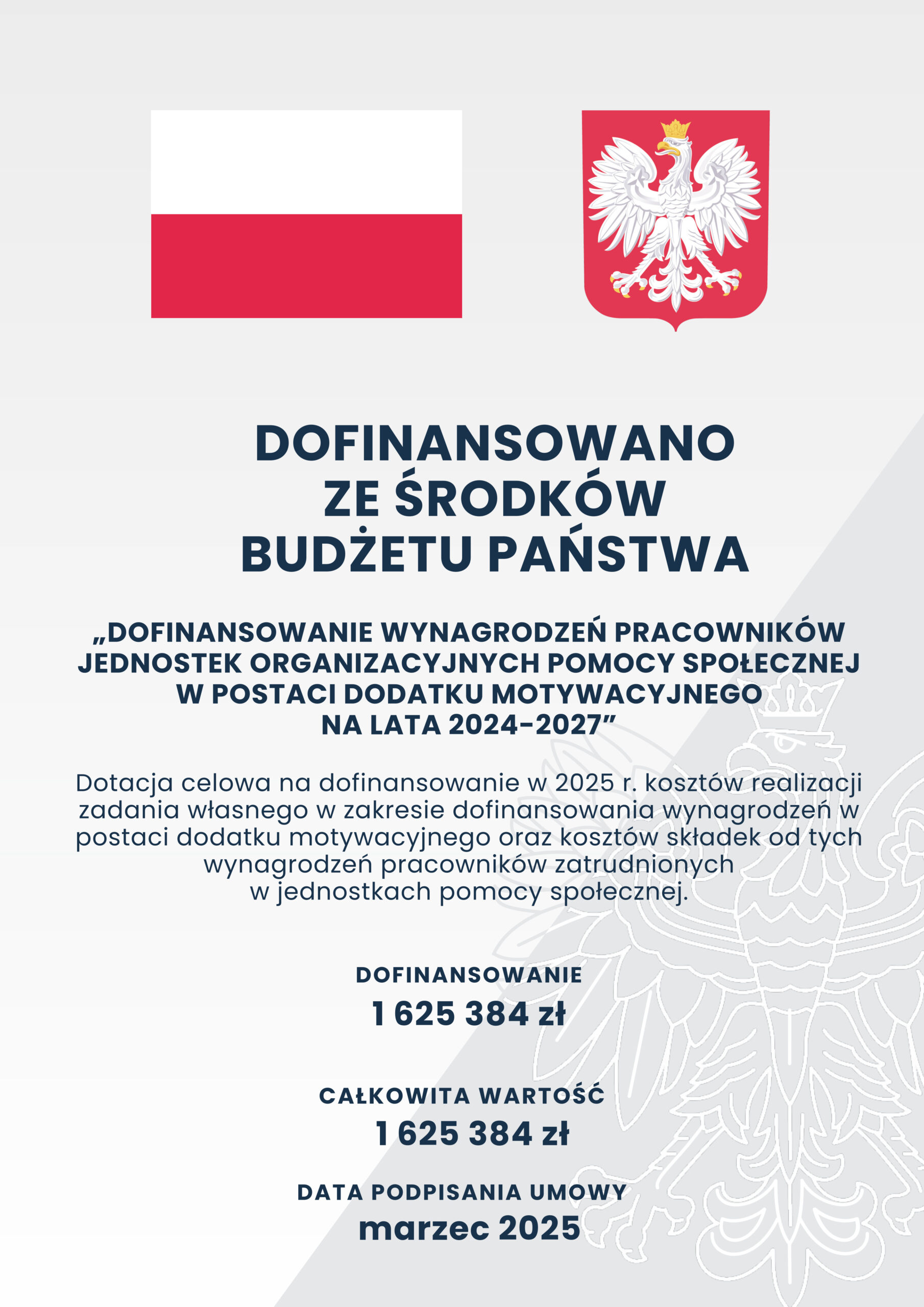 Zadanie: Dofinansowanie zadań własnych Gminy polegających na wypłacie od 1 lipca 2024r. do 31 grudnia 2024r. dodatku motywacyjnego w wysokości 1 000 zł brutto miesięcznie oraz na pokrycie kosztów składek od tego dodatku pracownikom zatrudnionym na umowę o pracę.