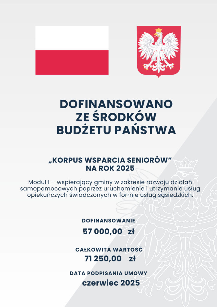 Gmina Miasto Puławy /Miejski Ośrodek Pomocy Społecznej w Puławach przystąpił do realizacji Program Ministerstwa Rodziny, Pracy i Polityki Społecznej pn. „Korpus Wsparcia Seniorów” na rok 2025 finansowany ze środków budżetu
