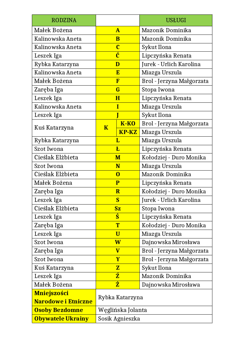 • Zespół ds. Usług i Pomocy Instytucjonalnej