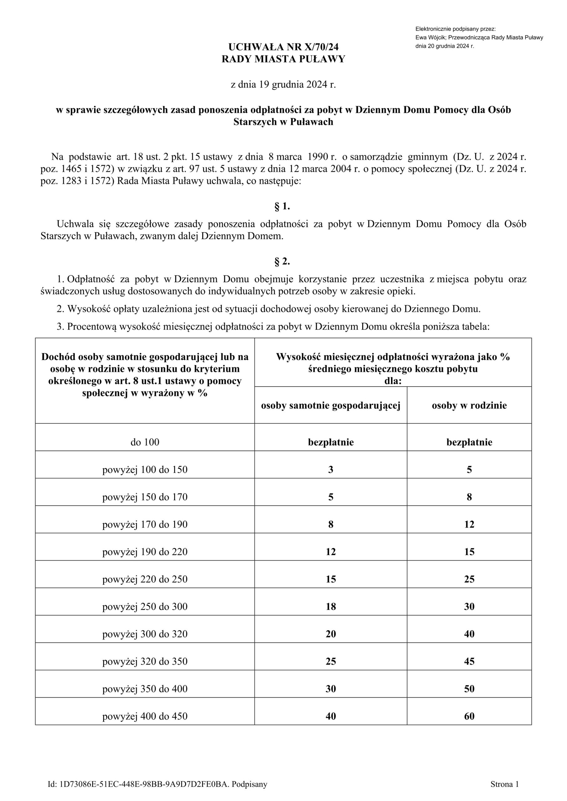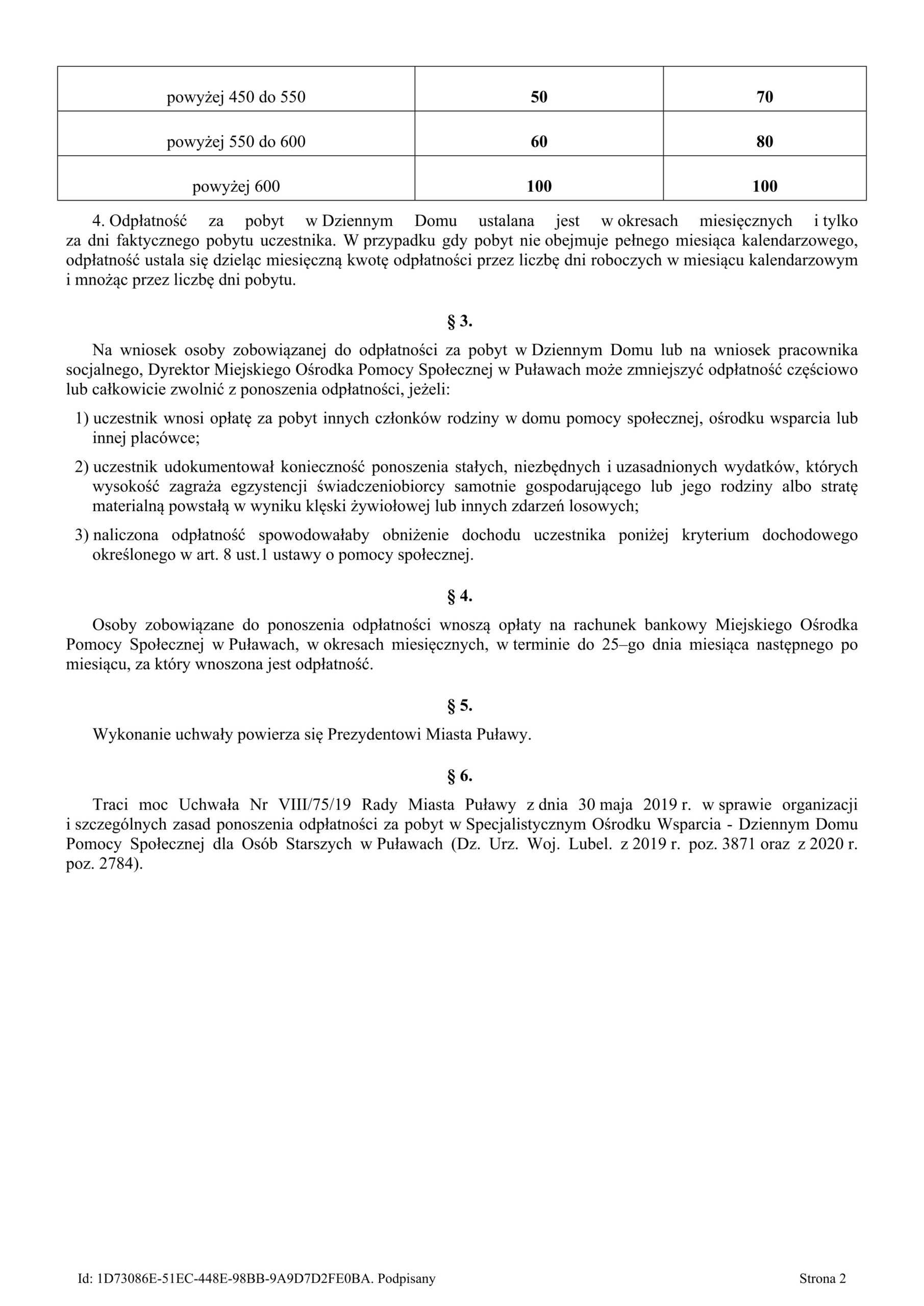 Tabela odpłatności