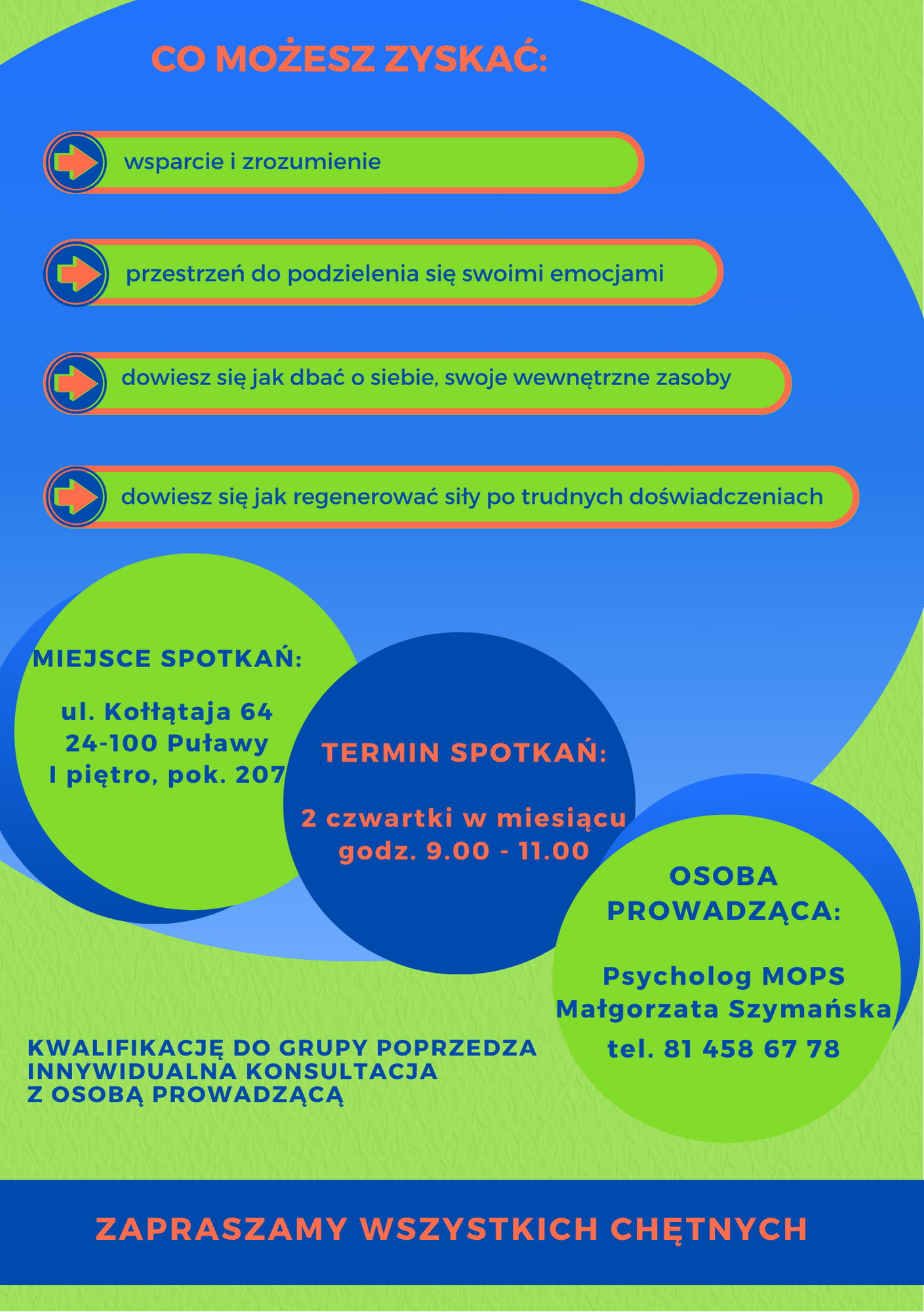 Szczegółowe informacje można uzyskać u psychologa MOPS prowadzącego spotkania