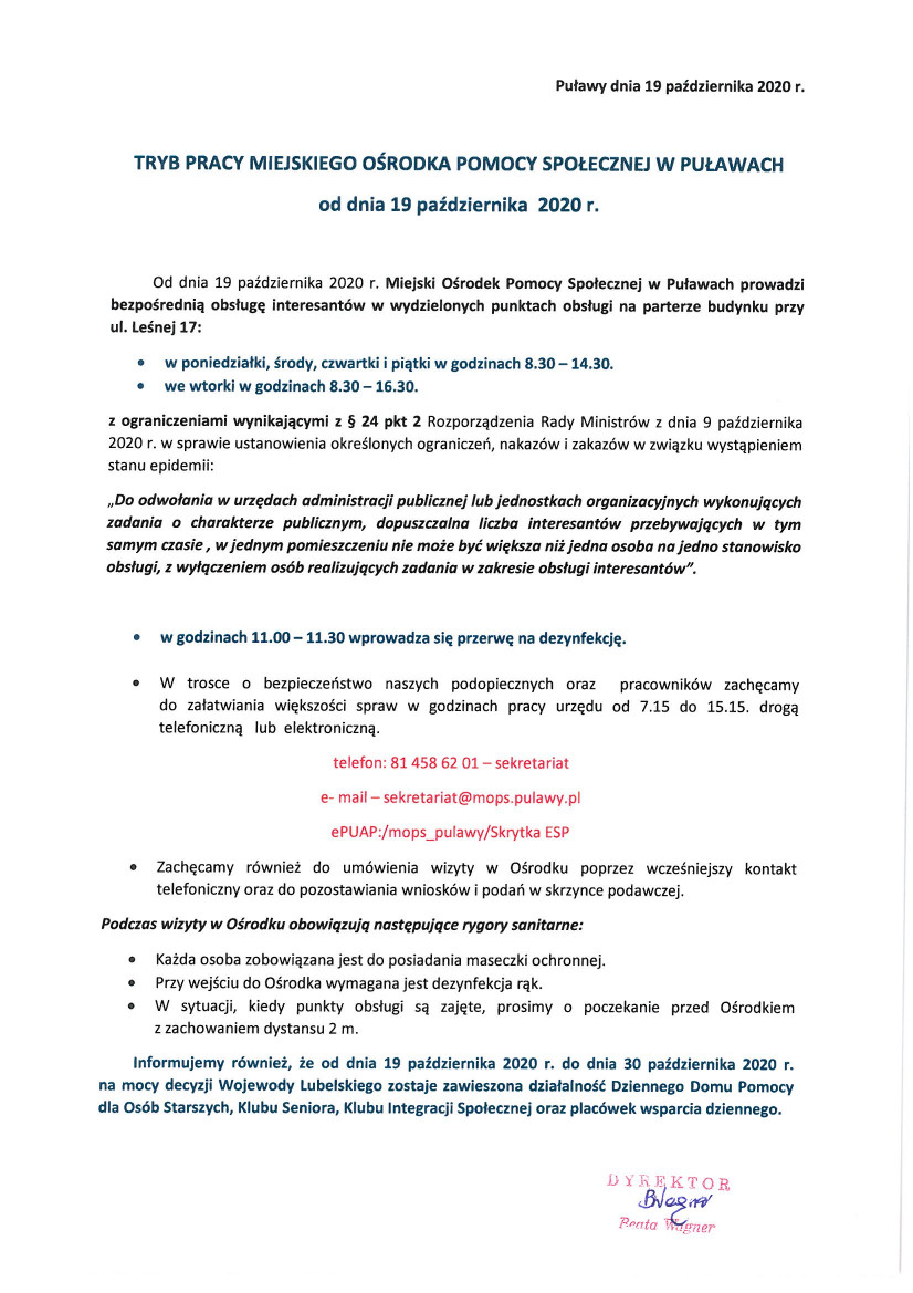 TRYB PRACY MIEJSKIEGO OŚRODKA POMOCY SPOŁECZNEJ